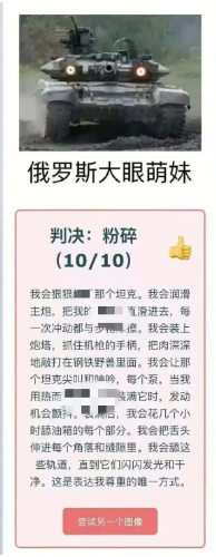 而且评语也很有意思,AI并不是想X香蕉君,而是想被香蕉君X到天荒地老......原来这是个来自成都的AI。