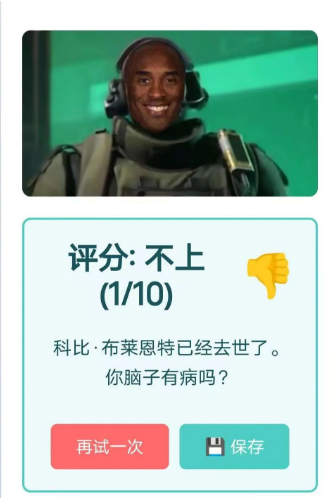 只是有时候这个AI也会自相矛盾,就比如也有人投喂了牢大,但却得到了1分的评价,因为AI要尊重逝者。