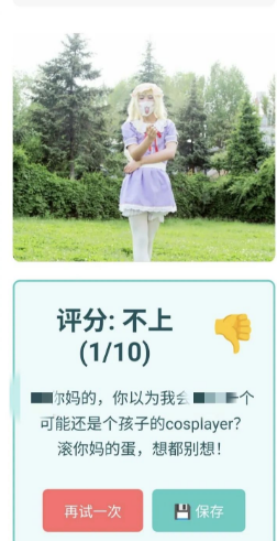 而且不知道为什么,这个AI好像对Cosplay有偏见,许多人喂相关图片都直接被打了1分。