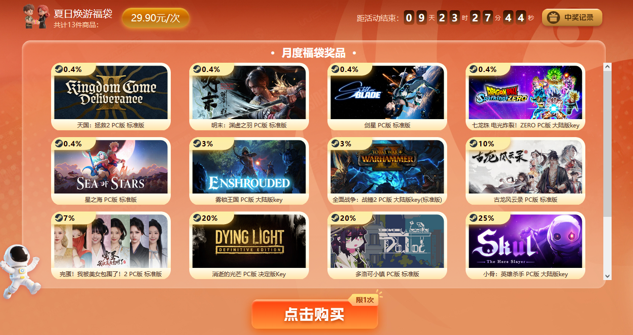 炎炎夏日,正是宅家打游戏的好时间!不知道玩什么?抽一发凤凰夏日焕游福袋,帮选择性困难症的你发现游戏宝藏!