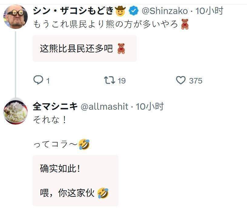 而岩手县在哪呢?并不是遥远的北海道,而是日本的本州岛东北部......这说明日本的黑熊泛滥,已经相当严重,都跑到本土了。不过这里要插一嘴,这新闻下面的小日子们倒是挺乐的,都在玩梗。