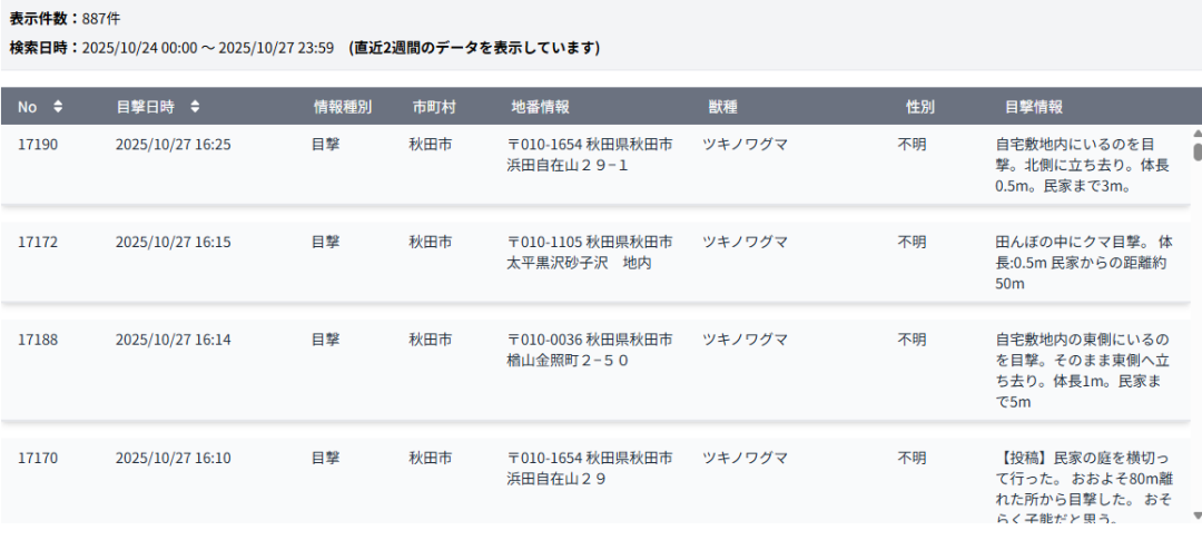 然后这次闹熊最厉害的地区,是日本的秋田县(就是那个秋田犬的秋田),黑熊泛滥到什么地步呢?短短3天(24日-27日)就有887起黑熊目击报告。