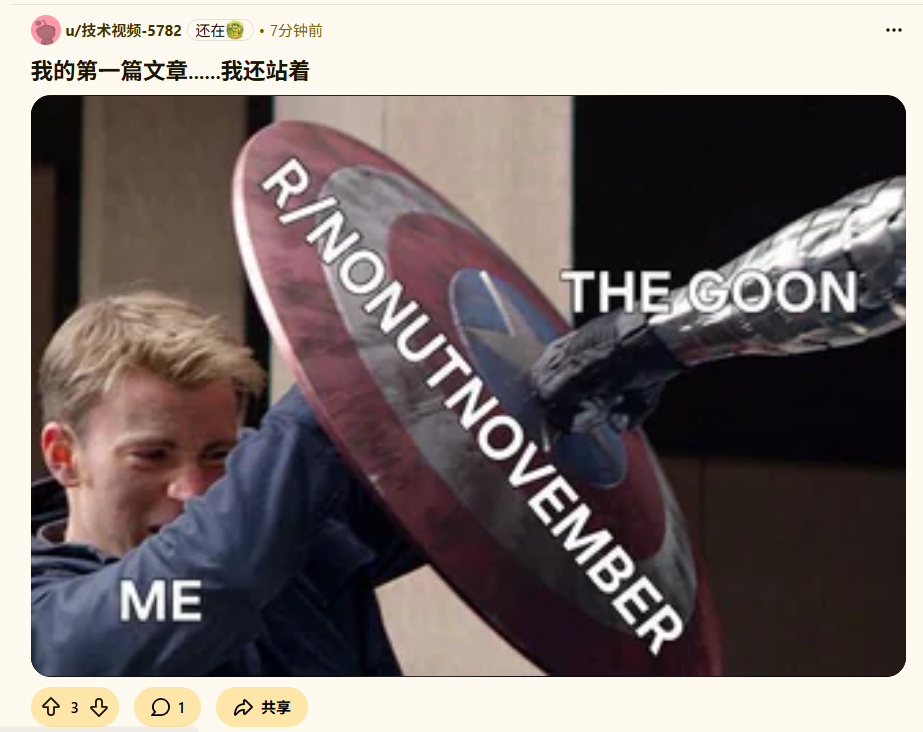 甚至还有更惨的,有些老哥已经开完了十一月第一炮后才记起来,No Nut November运动已经开始了.....