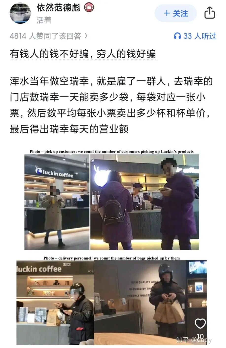 最重要的是,他们开店前完全不调研,当年瑞幸被搞的时候,那人是专门雇人就在瑞幸门口找个地方盯着,啥也不干,就看每天开门到关门一共有多少顾客,从而计算每家店的营收。