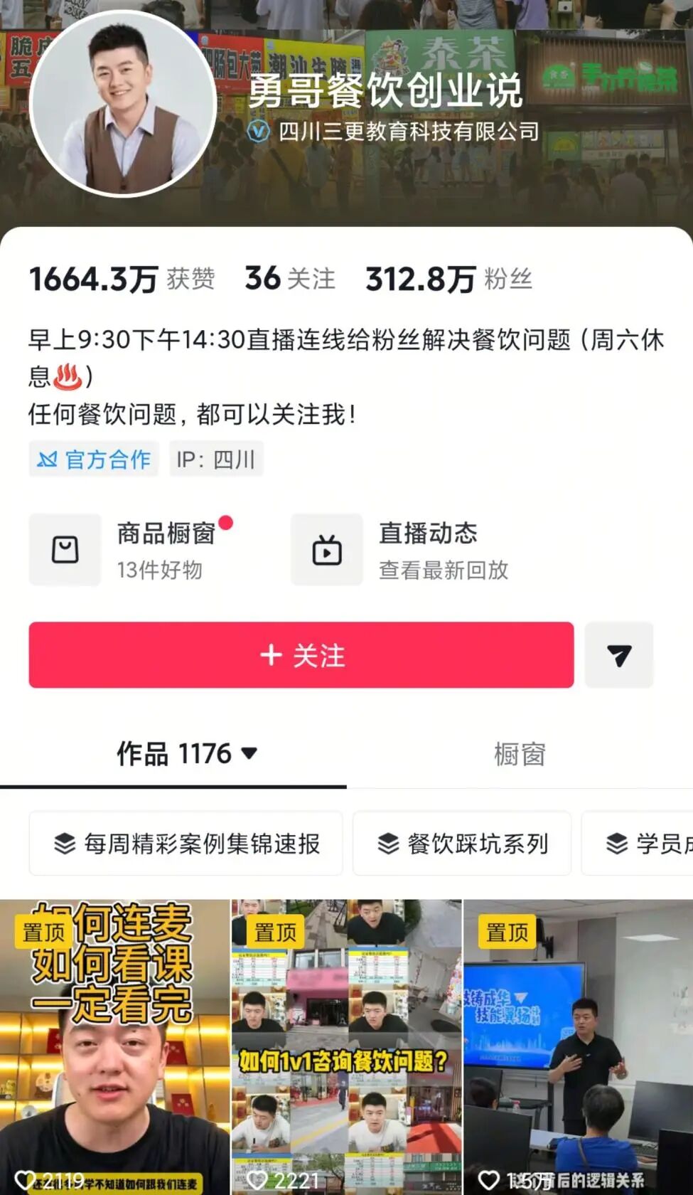 这个博主ID为“勇哥餐饮创业说”,看这个ID名就知道主要是指导哪个赛道的。
