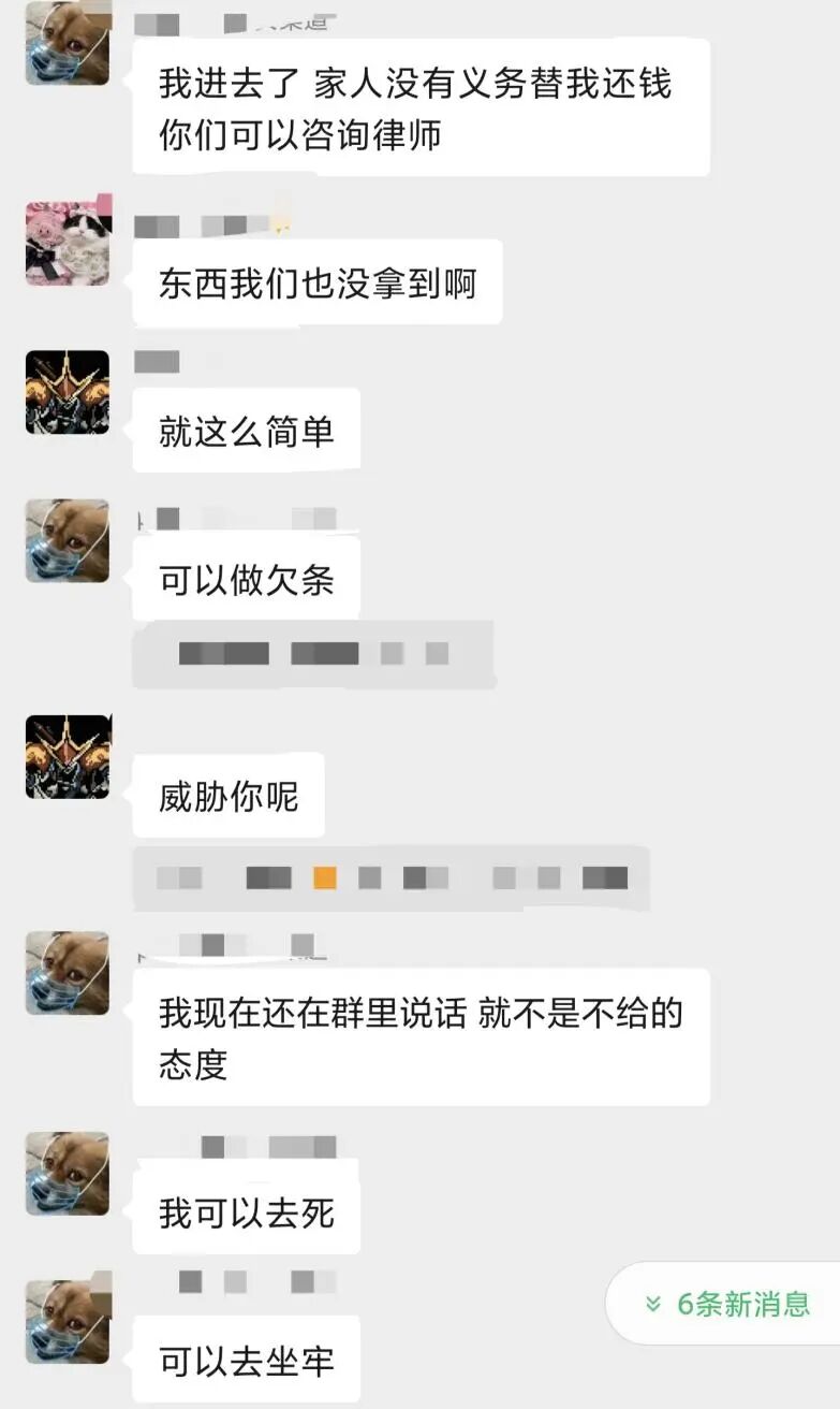 甚至还表示家里人没有义务替我还钱,不信大家可以咨询律师——总之老猫觉得,这已经是摆烂式的威胁了。