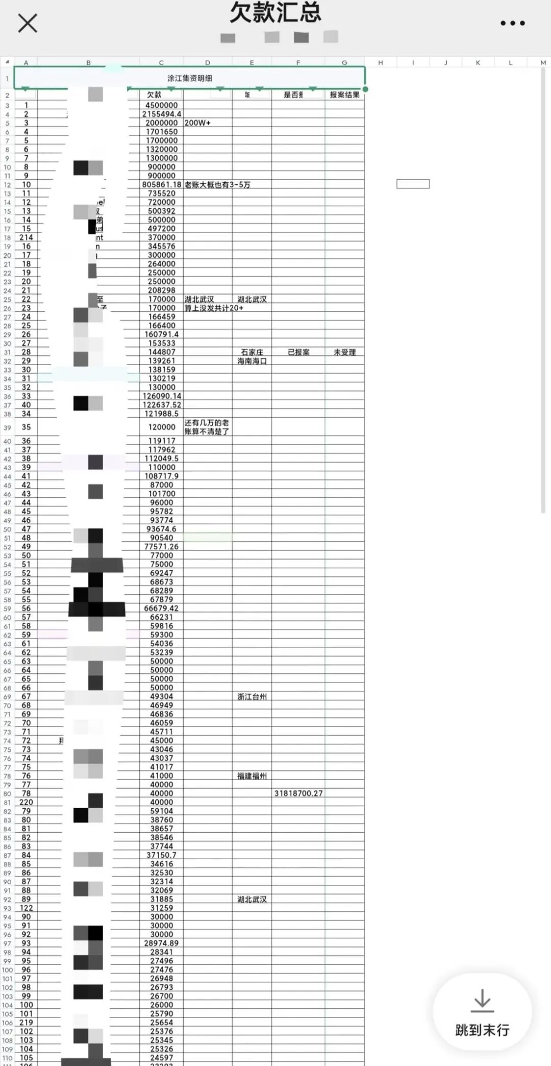 而这次的受害者仅仅填了表的,就多达234位!至于金额据说最高的几位都是tb上的商家,他们一次性都付了几百万.....