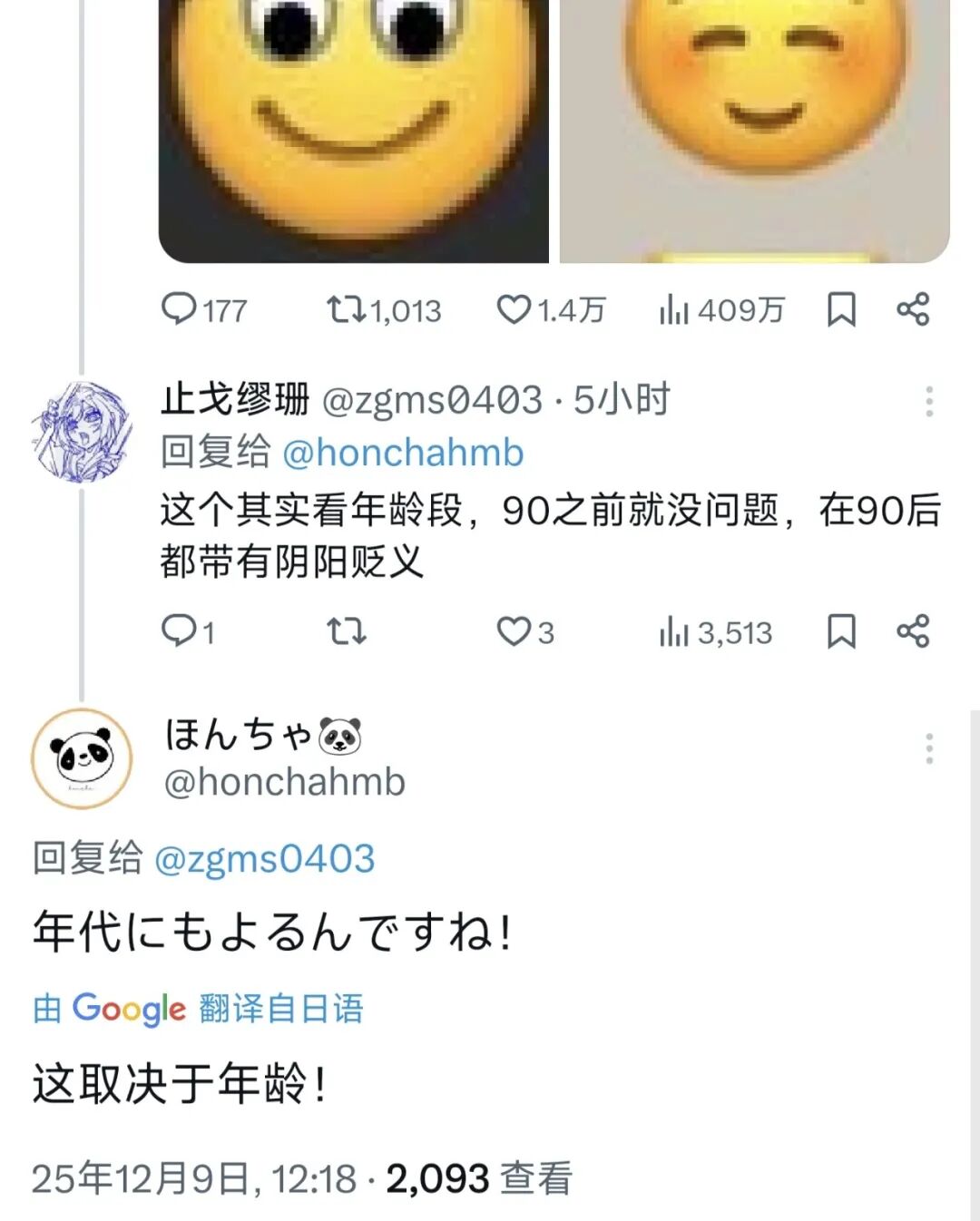 然后又中国网友解释说:没关系,这个表情如果是90后发的就是在阴阳怪气,但如果是90年之前生人的人发,就是在表示友善。