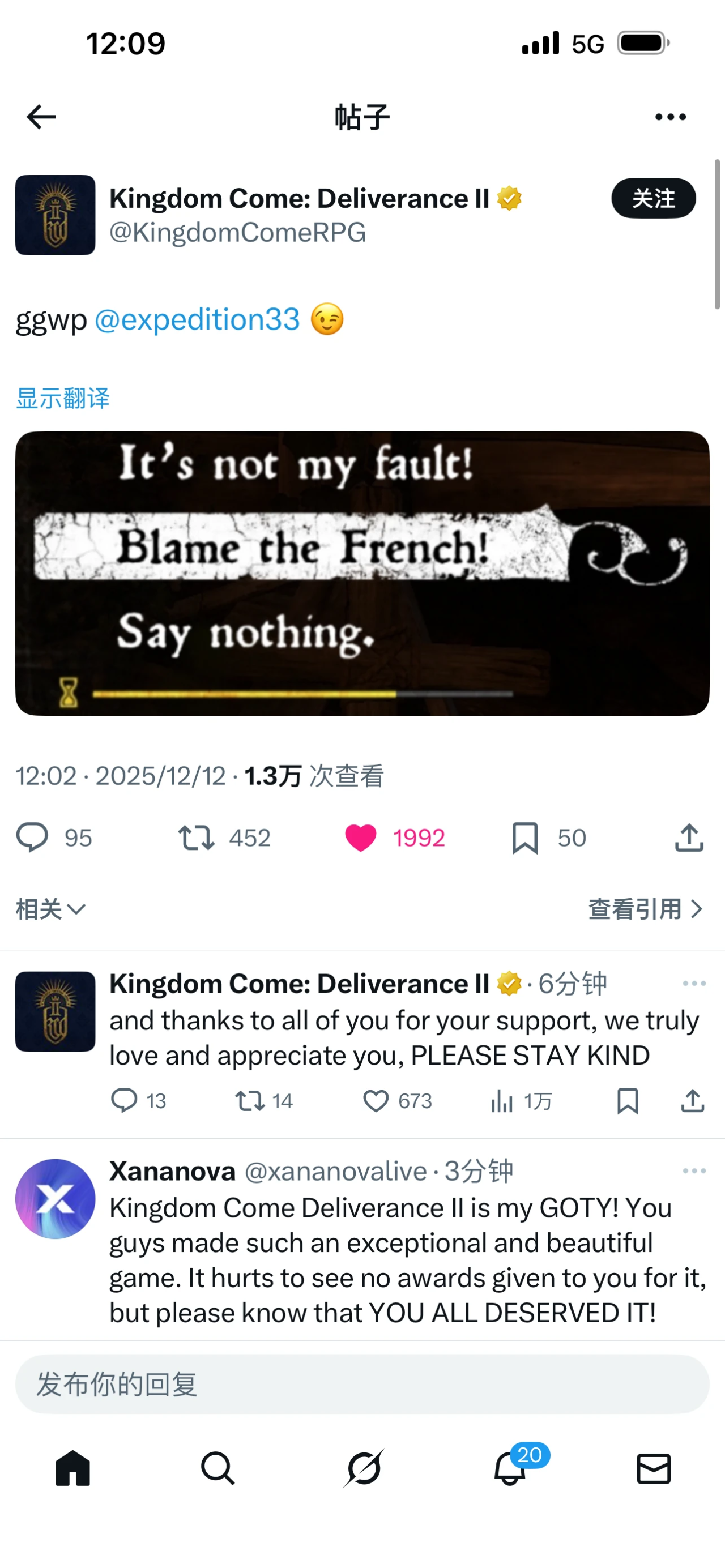 不满的玩家们,他们觉得至少角色扮演奖项,可以给到《天国:拯救2》;
