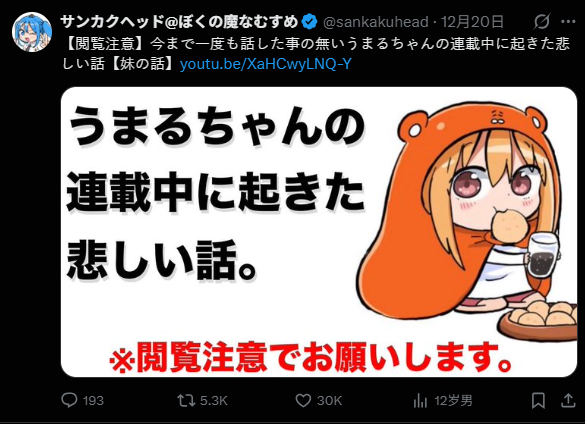 随后他又表示:其实在《干物妹!小埋》连载的时候(约在2015年,动画第一季播出、单行本第 6 至 7 卷期间),自己在现实世界中的亲妹妹就被诊断出患有罕见疾病并开始住院治疗。