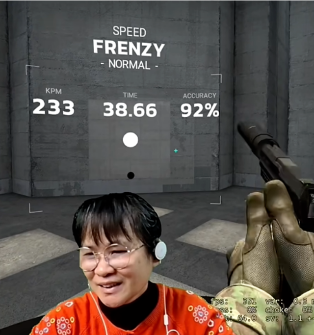 举个例子吧,去年她用CSGO打球训练,结果38秒打了233个球,命中率高达92%。换算过来,娟姨每秒就能打爆6.1个球,这绝对是顶级玩家水平。因为普通老玩家命中率大概在85%左右,也就是每秒3个球左右。至于新手的话,一秒1-2个球是正常水平,命中率大概只能维持在60%左右。