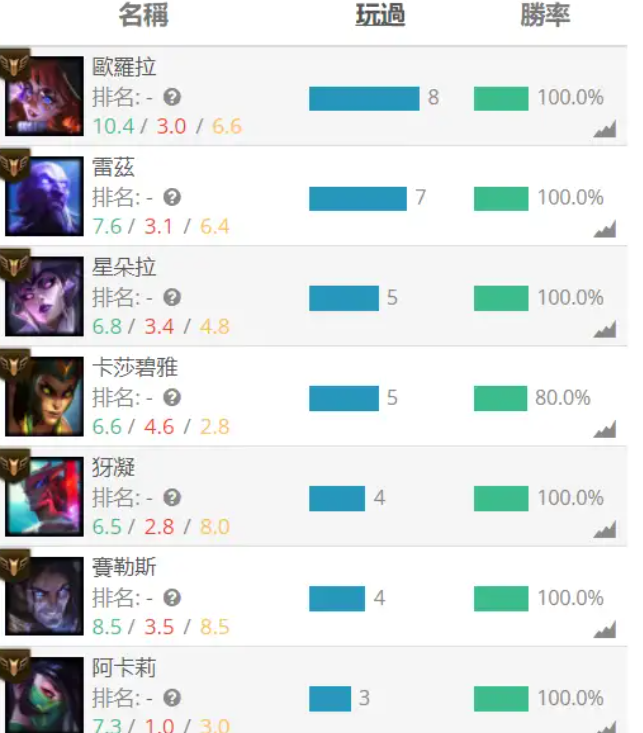 2.这个玩家主攻中单,输掉的四局都不是中单,貌似是在进行什么AI训练。
