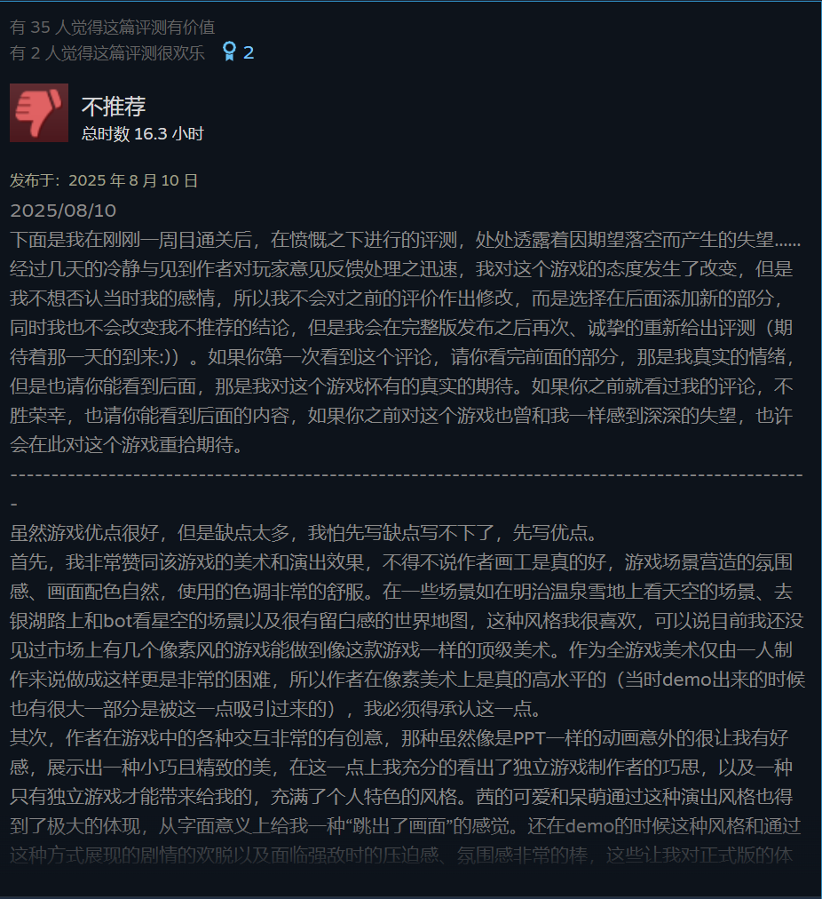 你可能说,这是许多玩家破防后的冲动发言。但评价区也不乏深入体验后给出较为深度客观的差评。
