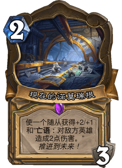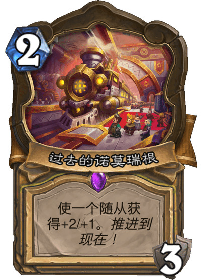 使一个随从获得+2/+1。推进到现在!
