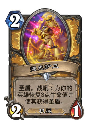 圣盾。战吼:为你的英雄恢复3点生命值并使其获得圣盾。