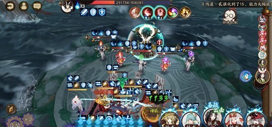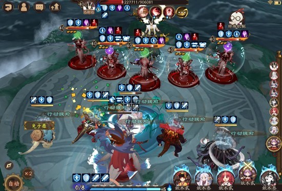 因为荒川的伤害不太够(用大公主应该可以跳过这个步凑,但需要注意火够不够用),所以看好右边的速度条,伊邪那美在敌方行动一回合之内会行动两次