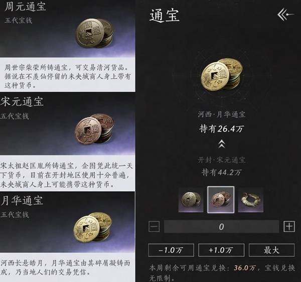 要注意的是,【宋元通宝】要在去开封之后才开放,到达单人模式三级后,也可通过不肝商城兑换有限的数量。