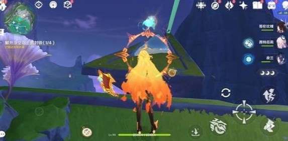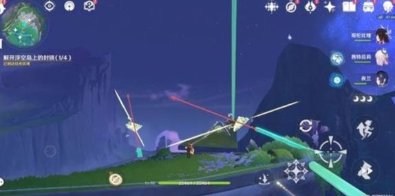 4、到达浮空岛,操控璇珑花旋转棱晶是指与图标重合平行,完成后获得精致宝箱*1