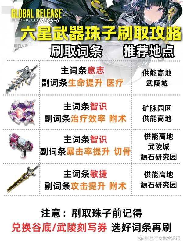 明日方舟终末地中有很多的六星专武,那么这些武器要怎么刷珠子呢?下面请看为大家带来的明日方舟终末地六星专武珠子刷取一图流,一起来看看吧。